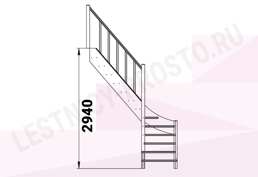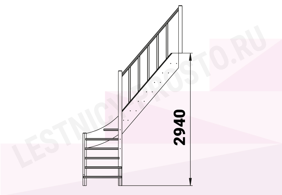 Обратите внимание! Данный вариант лестницы изготовлен из сосны эконом-класса - это сосна с заметными местами синевы, такая особенность никак не отражается на прочности и надежности лестницы, но может быть заметна при прозрачном покрытии или покраске лестницы в светлые тона.