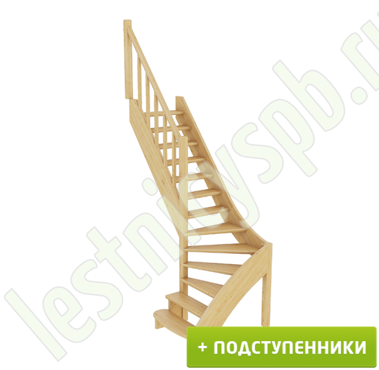 Базовый комплект включает в себя деревянные элементы лестницы с подступёнками и ограждения без какого-либо покрытия.