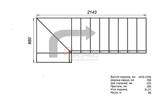 Модульная лестница Спринт 225 2475-2585, Серый, Лиственница, Нержавеющая сталь