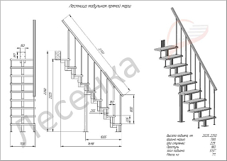 Деревянная межэтажная лестница ЛЕС-215, Сосна