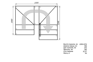 Модульная малогабаритная лестница Компакт 2250-2475, Черный, Лиственница, Нержавеющая сталь