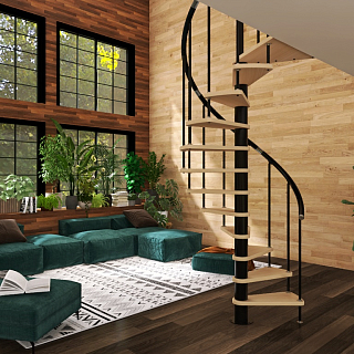 Винтовая лестница Prosto Spiral Black D120см, h303.9-348,1 см, бук
