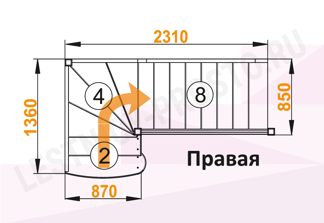 Форма лестницы Г-образная