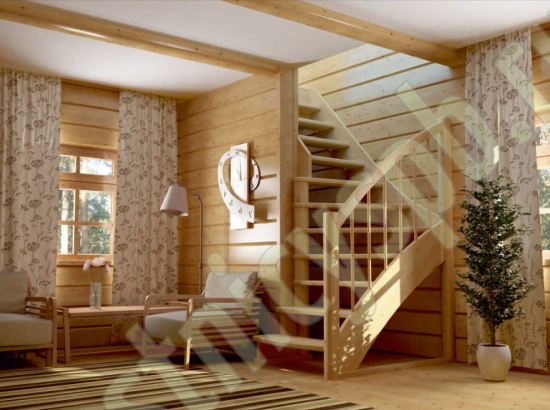 Базовый комплект включает в себя деревянные элементы лестницы и ограждения без какого-либо покрытия.