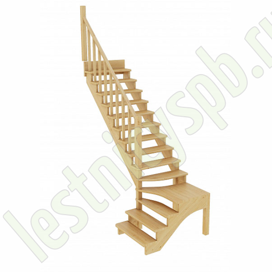 Базовый комплект включает в себя деревянные элементы лестницы и ограждения без какого-либо покрытия.