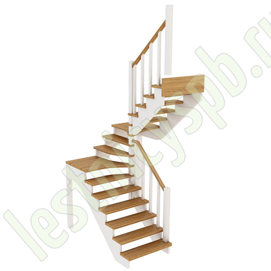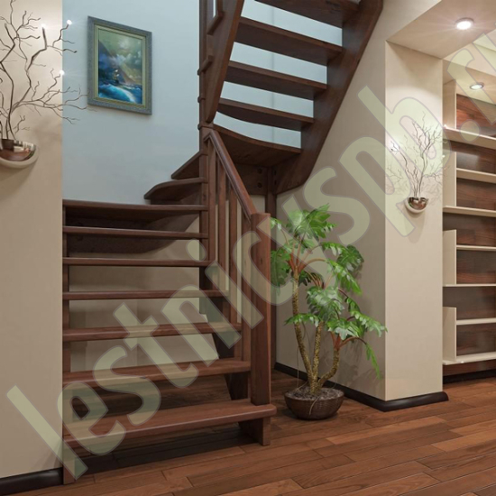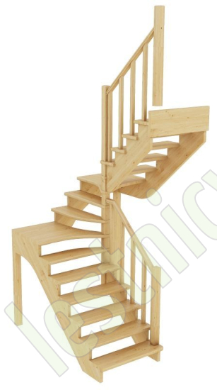 Ограждение лестницы с одной стороны. Базовый комплект включает в себя деревянные элементы лестницы и ограждения без какого-либо покрытия.