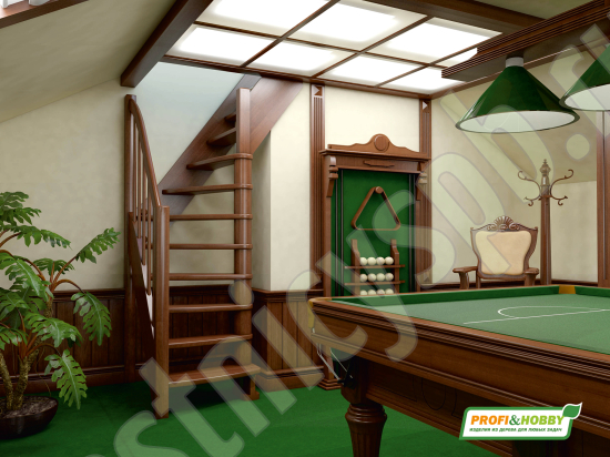 Ступени и поручень лестницы изготовлены из ясень, остальные элементы из сосны.