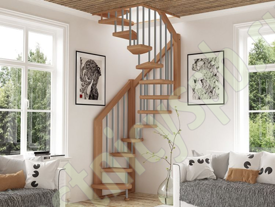 Базовый комплект включает в себя деревянные элементы лестницы и ограждения без какого-либо покрытия.
