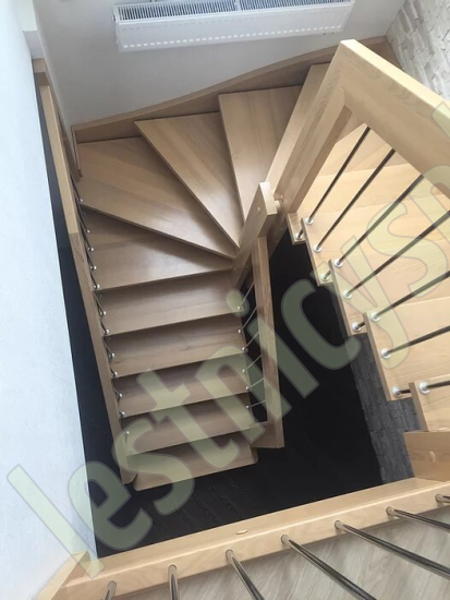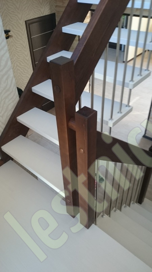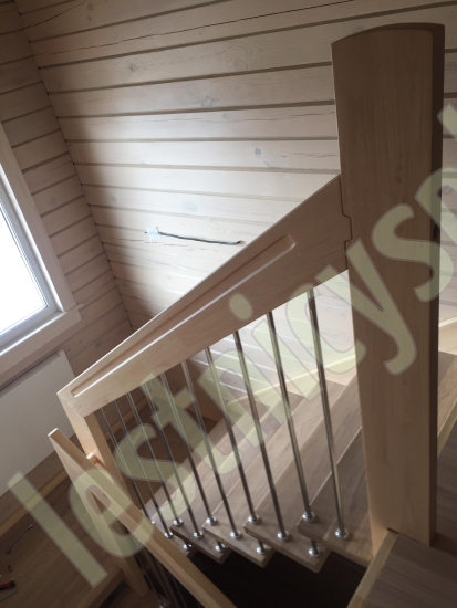Надёжная современная лестница выполнена по немецкой технологии. Стоимость указана для лестницы с ограждением (с одной стороны); Поставляется в разобранном виде, в комплекте необходимый крепёж; Лестницу можно собрать самостоятельно; Так же, вы можете заказать услугу монтажа нашими специалистами; 4 вида породы дерева для изготовления лестницы: сосна, бук, ясень, дуб; возможна комбинированная лестница: из сосны (ступени бук, ясень, дуб); Деревянные элементы без какого-либо покрытия, отшлифованы, готовы к покраске. За дополнительную плату, вы можете изменить любые параметры, а именно: увеличить глубину ступени; увеличить ширину марша до 900 мм. и выше; заказать подступенки к лестнице; заказать отделку перекрытия (между 1-м и 2-м этажами); изготовить дополнительный промежуточный марш; заказать ограждение 2-го этажа; покраска в любой цвет или несколько цветов или покрытие защитными средствами; дополнение балясины из нержавеющей стали деревянными элементами; покраска балясин из нержавеющей стали порошковой краской в цвет RAL.