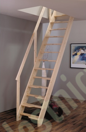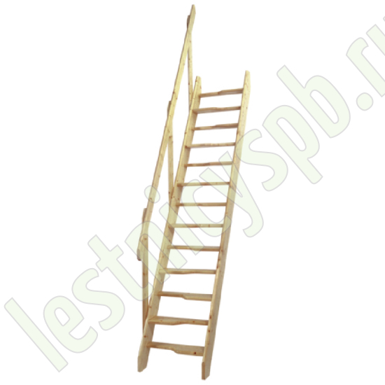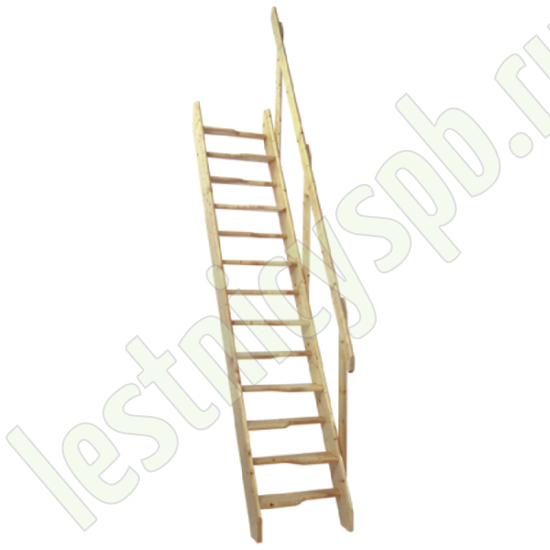 Базовый комплект включает в себя деревянные элементы лестницы и поручень без какого-либо покрытия.