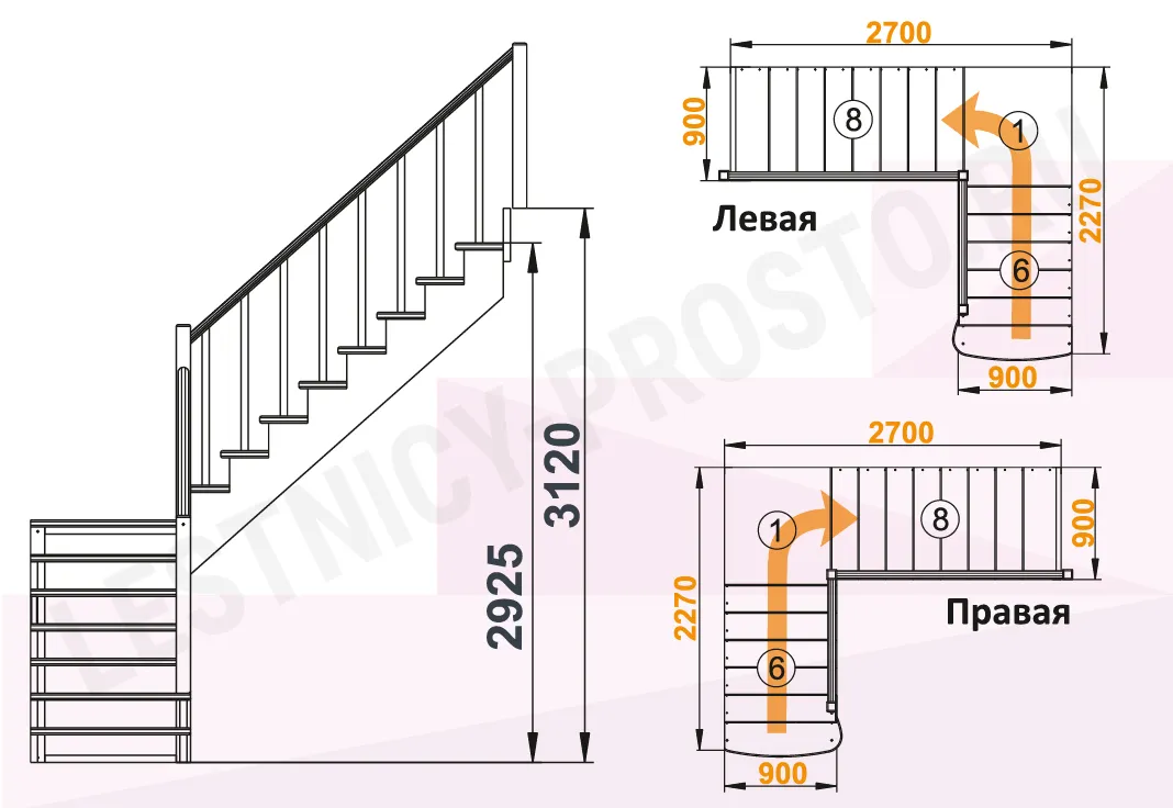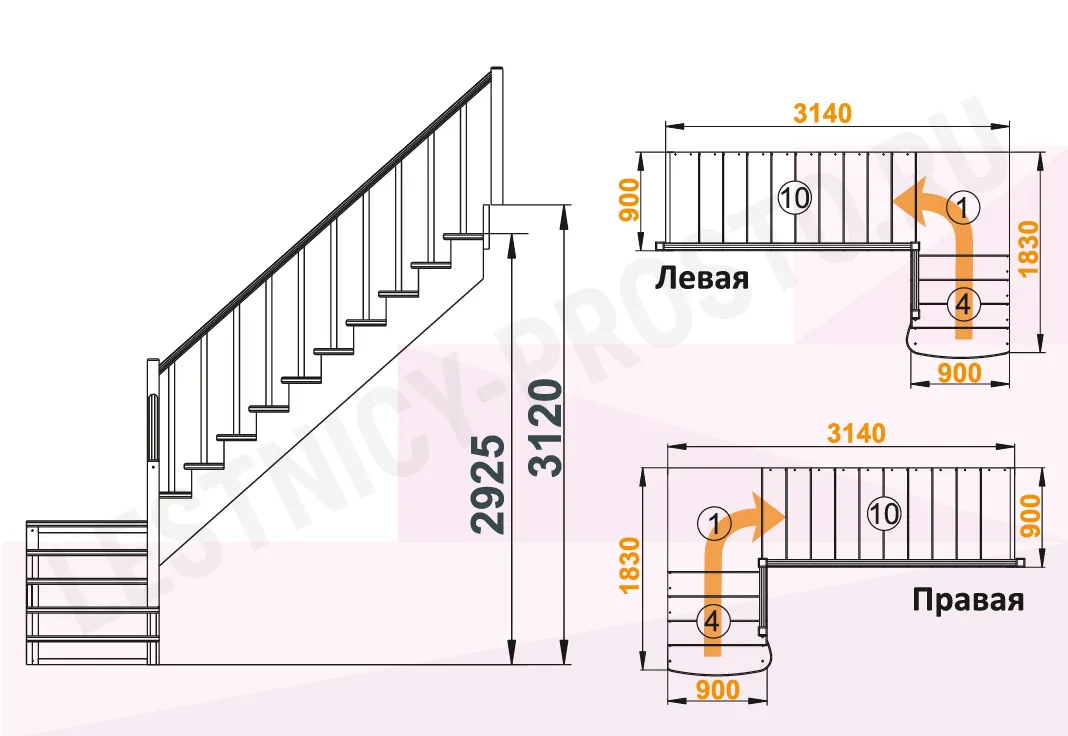 Базовая комплектация включает в себя элементы лестницы и ограждения без какого-либо покрытия. Ограждение можно заменить на любое по вашему вкусу (итоговая стоимость изменится).
