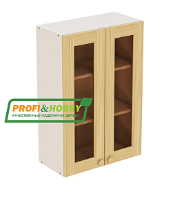Шкаф навесной 2 двери 600х340х720 + фасад под стекло сосна без покраски