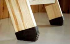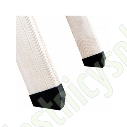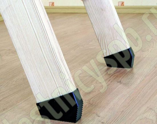 Изготавливаются из поливинилхлорида, защищают пол от возможных царапин, делают лестницу более устойчивой, облегчают подгонку длины лестницы, когда ее необходимо немного укоротить, за счет того, что в своей конструкции такая насадка уже имеет скос и две направляющие лестницы достаточно обрезать под прямым углом. Плотно одеваются на края двух направляющих и фиксируются еще и саморезом - закручивается снизу (в деревянных моделях).