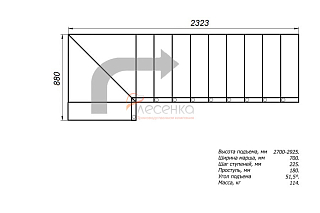 Модульная лестница Фаворит 225 2700-2820, Серый, Бук, Нержавеющая сталь