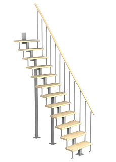 Модульная малогабаритная лестница Линия 2700-2925, Серый, Бук, Нержавеющая сталь