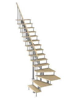 Деревянная межэтажная лестница ЛЕС-91 2700-2925 проем 1220-780, Бук