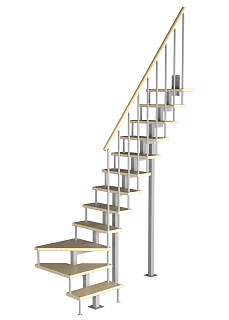 Модульная малогабаритная лестница Компакт 2700-2925, Белый, Бук, Нержавеющая сталь