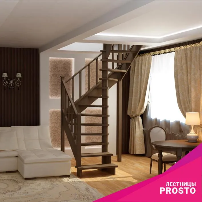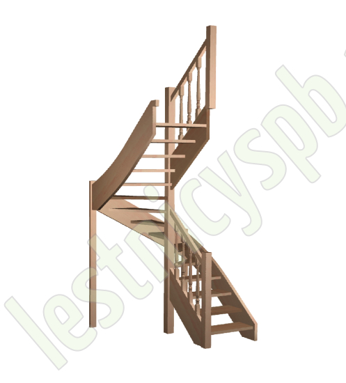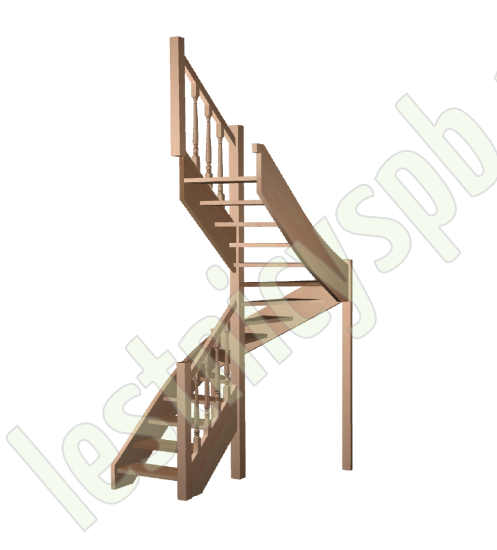 Базовый комплект включает в себя деревянные элементы лестницы и ограждения без какого-либо покрытия. В стандартной комплектации лестницы поставляются с квадратными столбами и точеными балясинами.