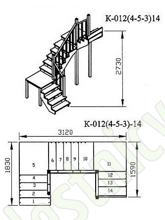 Высота лестницы 2730 мм