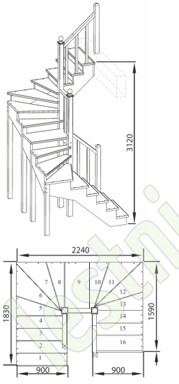Элементы лестницы, ограждение, крепёж, инструкция по сборке