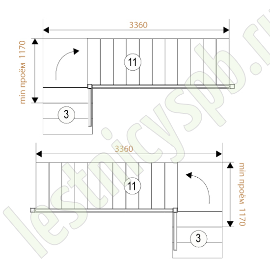 Высота лестницы 2925 - 3120 мм