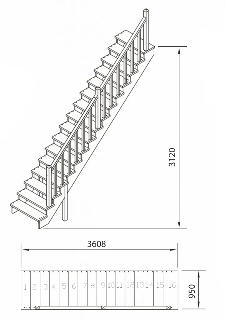 Элементы лестницы, ограждение, крепёж, инструкция по сборке