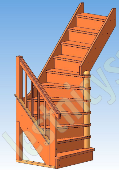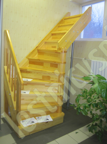 Компактная комфортная лестница с подступенками. Базовый комплект включает в себя деревянные элементы лестницы без какого-либо покрытия. Лестница поставляется в разобранном виде.