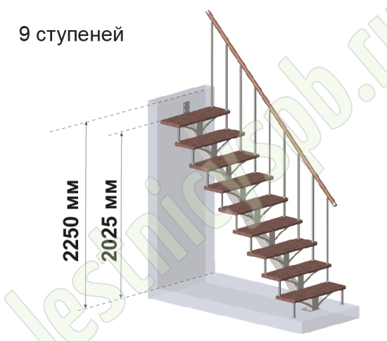 Комплект для лестницы на металлокаркасе PROSTO MONO из 9 ступеней.