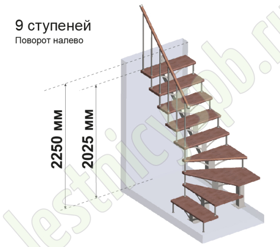 Комплект ограждений для Г-образной лестницы PROSTO MONO из 10 ступеней.