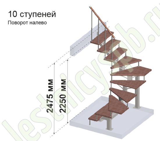 Комплект ограждений для П-образной лестницы PROSTO MONO из 10 ступеней.