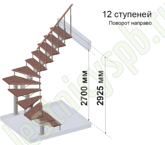 Комплект ограждений для П-образной лестницы PROSTO MONO из 12 ступеней.