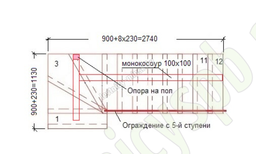 Комплект ограждения для Г-образной лестницы MONO из 12 ступеней. <br>