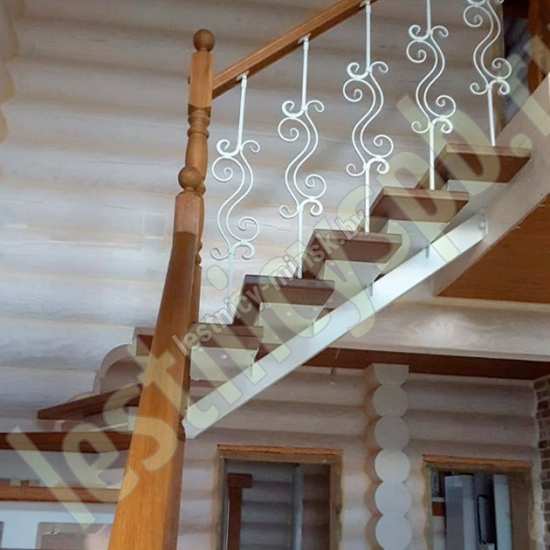 Стойки кованые (по одной на ступень) , столбы и поручень из бука без какого либо покрытия.