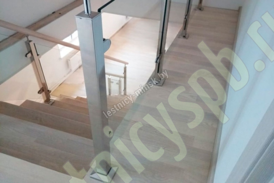 Ограждение выполняется из закаленного стекла толщиной от 8 мм. Стеклянные листы монтируются на стойки из нержавеющей трубы.<br>