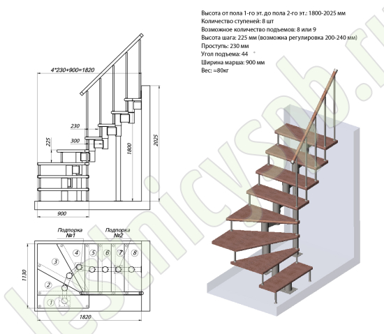Вас интересует Ограждение для г-образной лестницы PROSTO MODULE h202.5, стойки крашеные