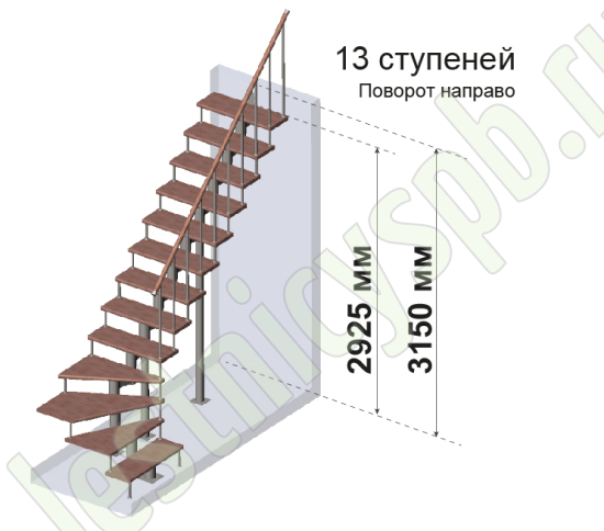 Вас интересует Ограждение для г-образной лестницы PROSTO MODULE h315, стойки крашеные