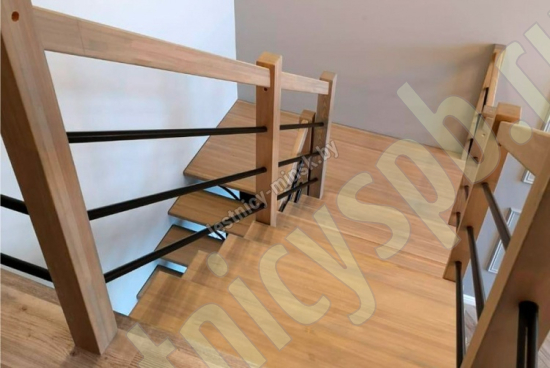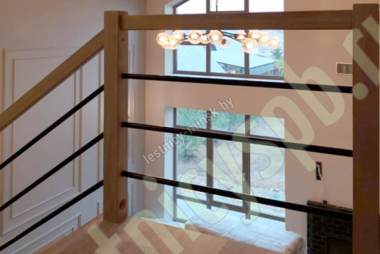 В комплекте: 3 прямых деревянных столба без какого-либо покрытия и профильный поручень без покрытия, комплект из 3 ригелей из стали (окрашены в цвет каркаса или хром по желанию) диаметром 12 мм. , необходимая фурнитура.