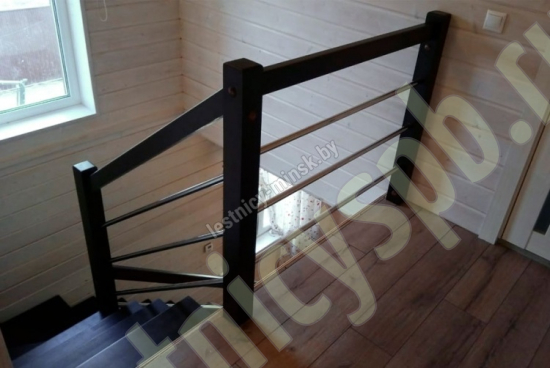 В комплекте: 3 прямых деревянных столба без какого-либо покрытия и профильный поручень без покрытия, комплект из 3 ригелей из стали (окрашены в цвет каркаса или хром по желанию) диаметром 12 мм. , необходимая фурнитура.