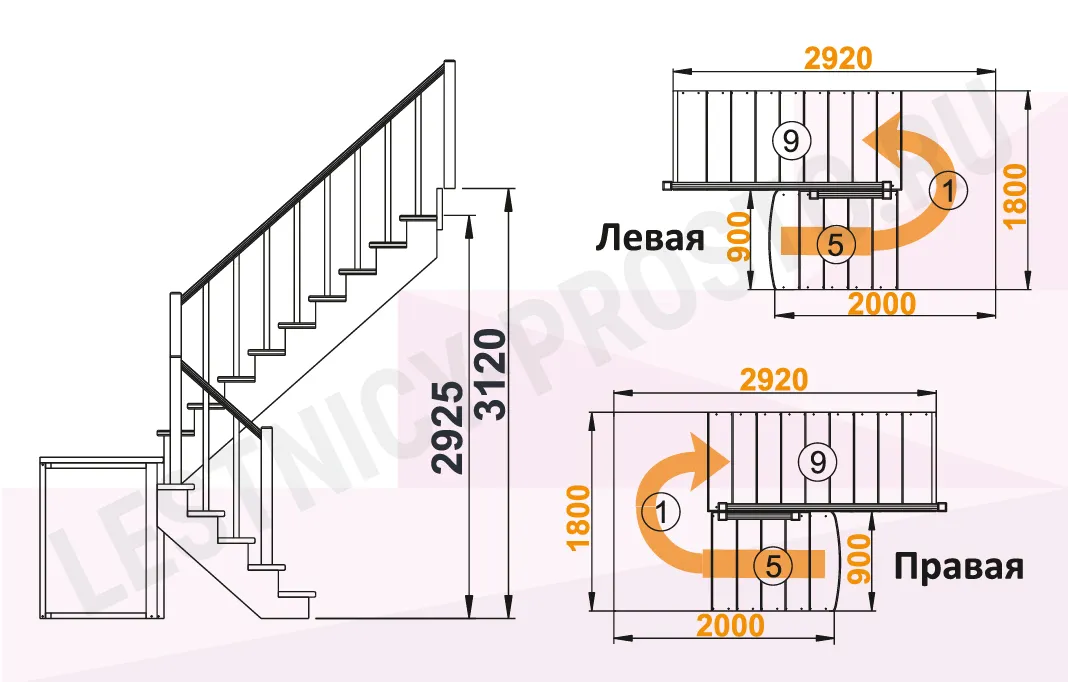 Удобная модель с площадкой и боковым ограждением. Базовая комплектация включает в себя элементы лестницы и ограждения без какого-либо покрытия. Ограждение можно изменить на любое по вашему вкусу (стоимость изменится).