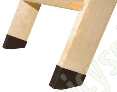 Специальный материал, из которого изготовлены наконечники, предохраняет поверхность пола от повреждения. Насадки легко монтируются, в том числе на уже установленные и подогнанные по высоте лестницы.