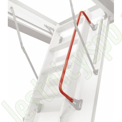 Боковой металлический поручень LXH красного цвета облегчает передвижение по лестнице и крепится к угловым петлям крышки люка. Может устанавливаться с одной или с обеих сторон лестницы.
