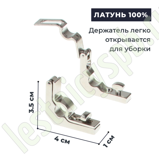 Ковродержатель комплектуется двумя держателями и двумя заглушками из латуни, а также прутком из нержавеющей стали.