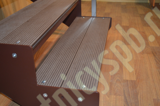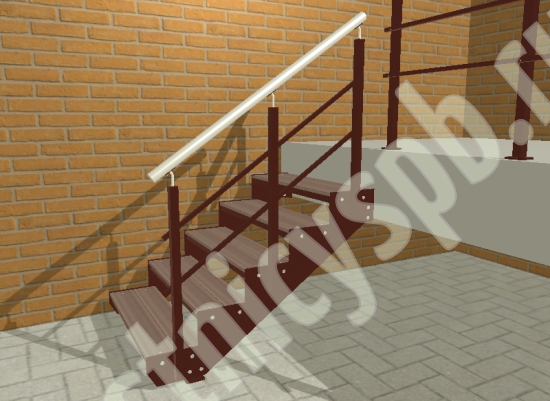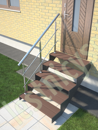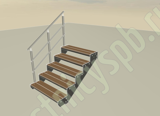 Надежный красивый каркас из толстого стального листа толщиной 8мм с оригинальным дизайном. Покрытие порошковое, очень прочное и долговечное. Все детали каркаса крепятся с помощью болтов, благодаря чему Вы можете собрать каркас самостоятельно без применения сварки. Ступени лестницы состоят из металлической рамки, обеспечивающей необходимую прочность, и покрытия из террасной доски ДПК (древесно-полимерный композит). Ступени не боятся воды и мороза, не теряют со временем свой внешний вид и не требуют ухода. Под заказ, возможно изготовление ступеней из других материалов, таких как: рифленая сталь, лотки под плитку, решетчатый настил, дерево. Базовое ограждение: крашеное или из полированной нержавеющей стали.