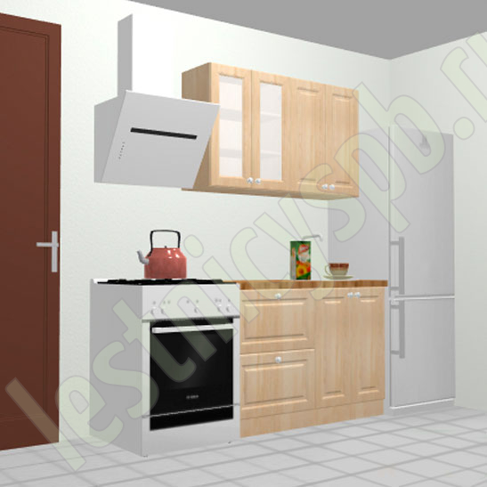 Кухня 1.2 х 2.14 м, массив сосны, без покраски