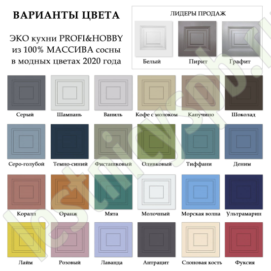 Компактный кухонный гарнитур из 100% массива сосны шириной 1,2 и высотой 2,32 метра (верхние шкафчики 90 см). Подойдёт для небольшой кухни, квартиры-студии или загородного дома. Цвет на выбор - 27 вариантов (при заказе кухни в нашем интернет магазине просьба указывать название цвета в комментариях).