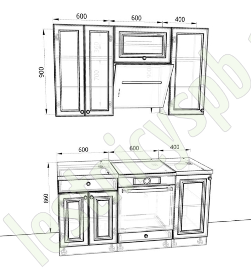 Вас интересует Кухня 1.6 х 2.32 м, массив сосны, бесцветный акриловый лак