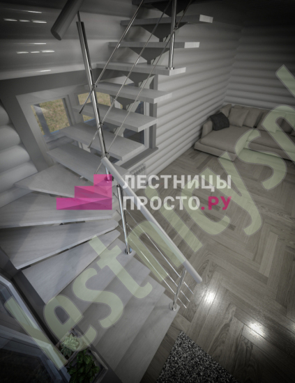 Поворот на 90° реализован посредством поворотных ступеней, высота поворота определяется параметрами вашего помещения и размерами проёма.