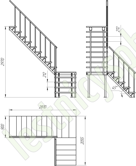 Высота лестницы 2970 мм