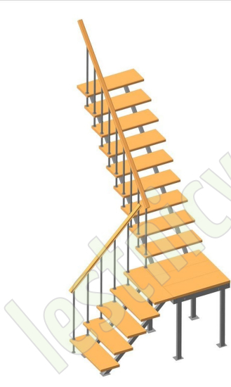 Универсальная лестница на металлическом каркасе с поворотной площадкой. Идеально дополнит любой интерьер, имеет современный вид и удобна в использовании. Монтаж осуществляется силами двух человек на объекте по указаниям, приведенным в паспорте на лестницу.