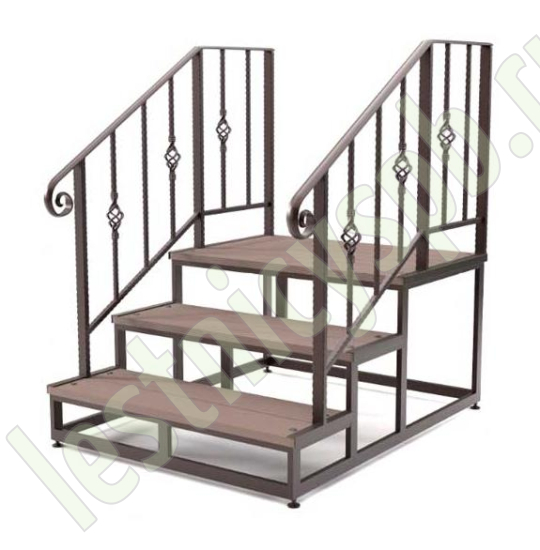 Ограждение данной модели оснащено поручнем из металла.